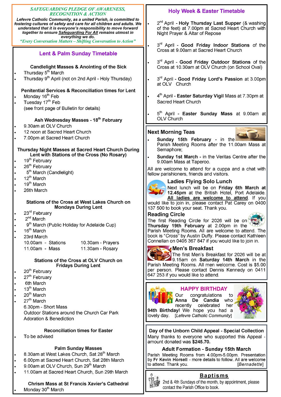 Our Parish and the Diocese of Adelaide are committed to the care, wellbeing and protection