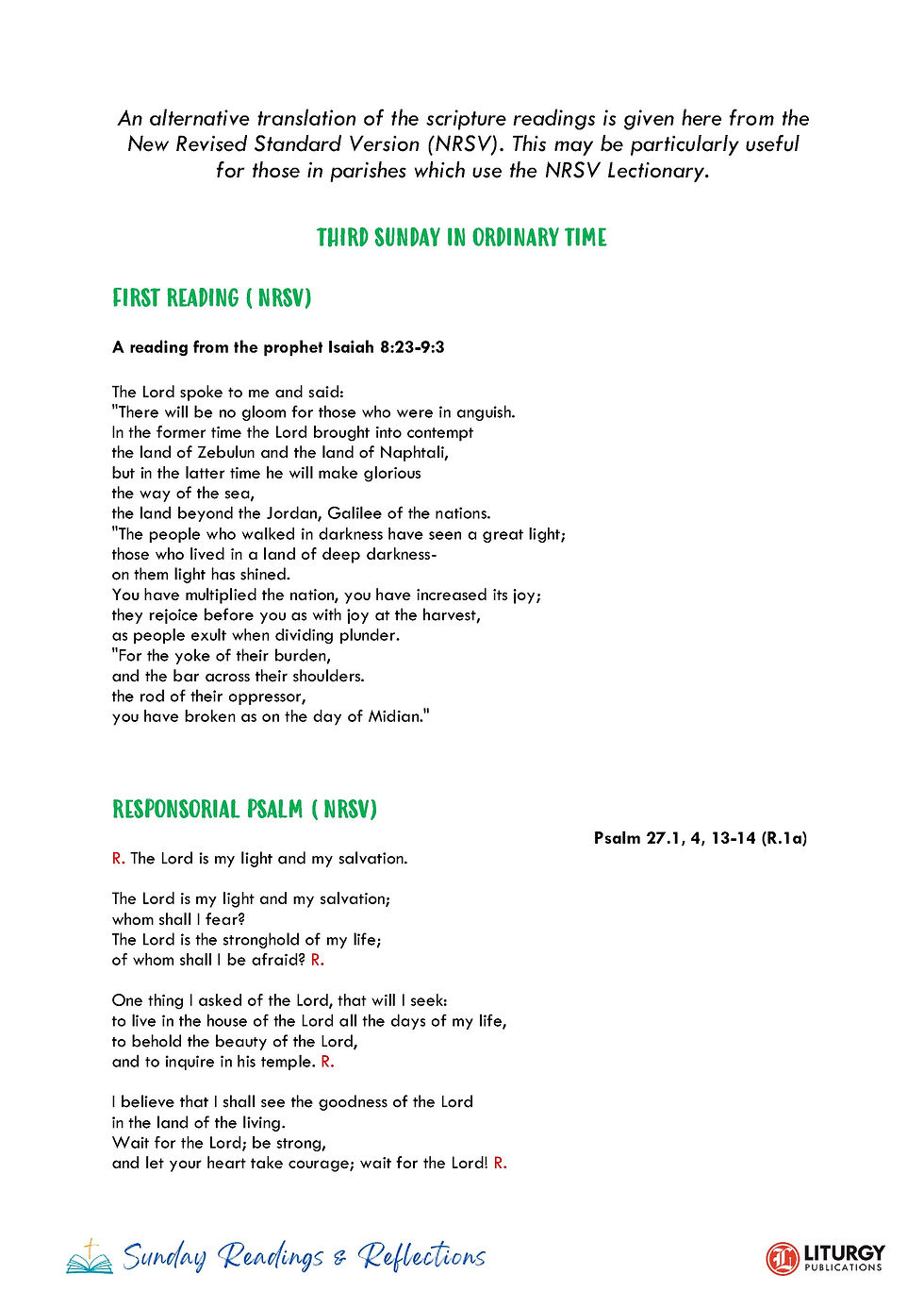 Sunday Readings: January 25th (3rd Sunday in Ordinary Time - Yr A)